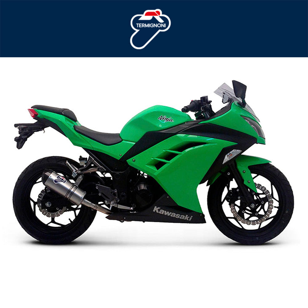 2012年から2017年式モデル カワサキ Ninja 300用テルミニョーニ レリバンス ステンレス/カーボン カーボンエンドキャップ付き スリップオン Termignoni Relevance Stainless/Carbon w/ Carbon End Cap Slip-On Ninja 300 (12-17) (送料無料)