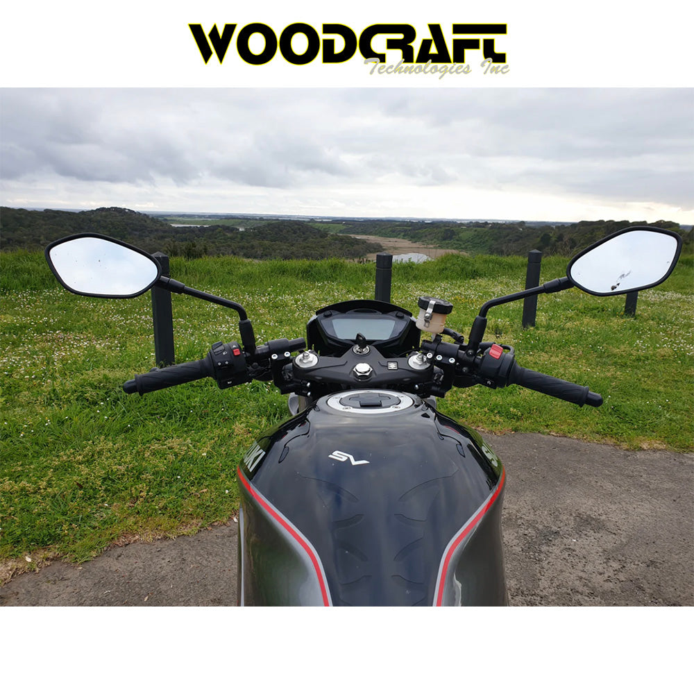 1999年から2025年式モデル スズキ SV650用 ウッドクラフト製 75mmサイドマウント角度調整可能クリップオンライザーセット Woodcraft 12-7741-78BS1 Suzuki SV650, SV650X 75mm Side Mount Adjustable Angle Clipon Risers (消費税、送料込み)