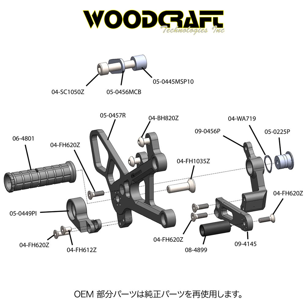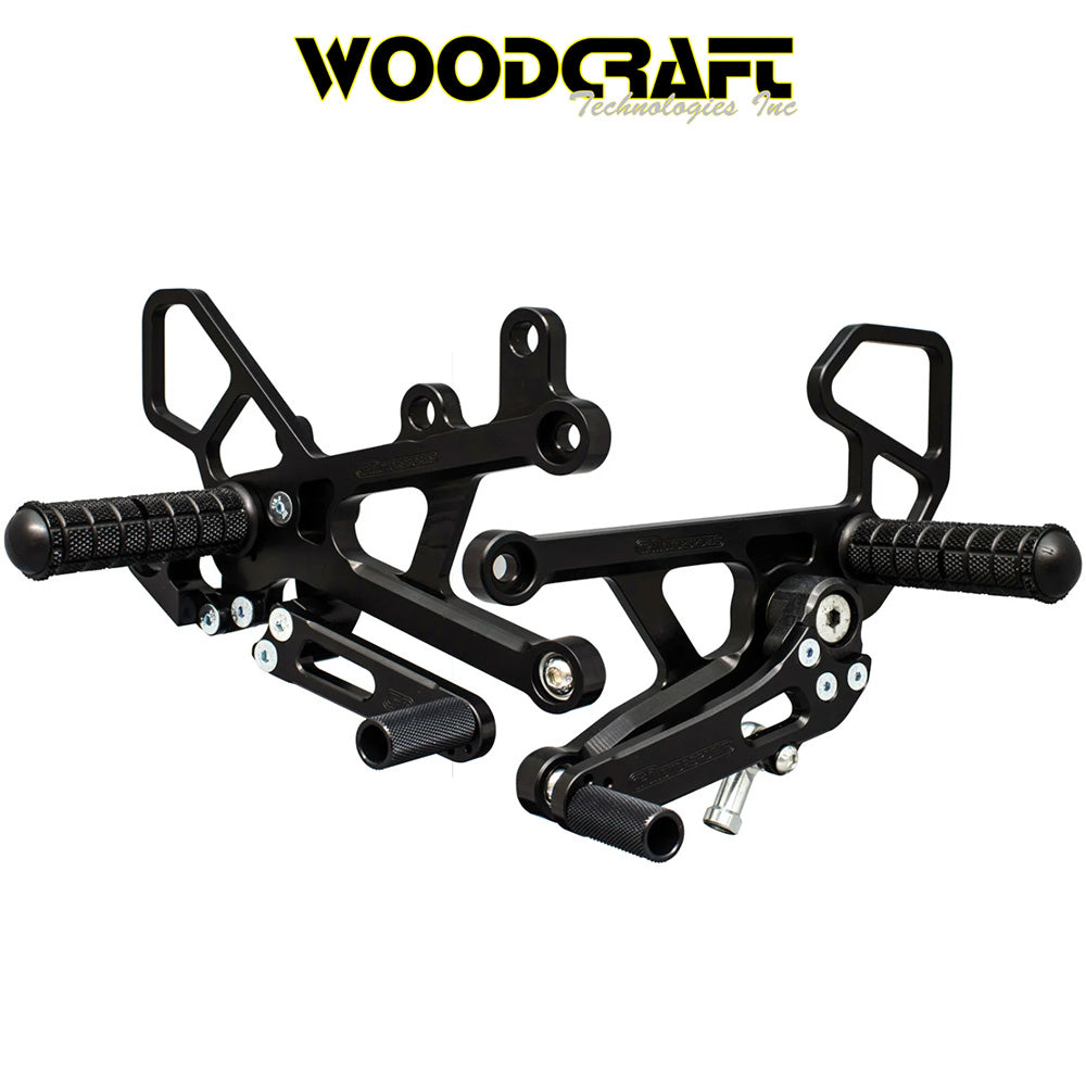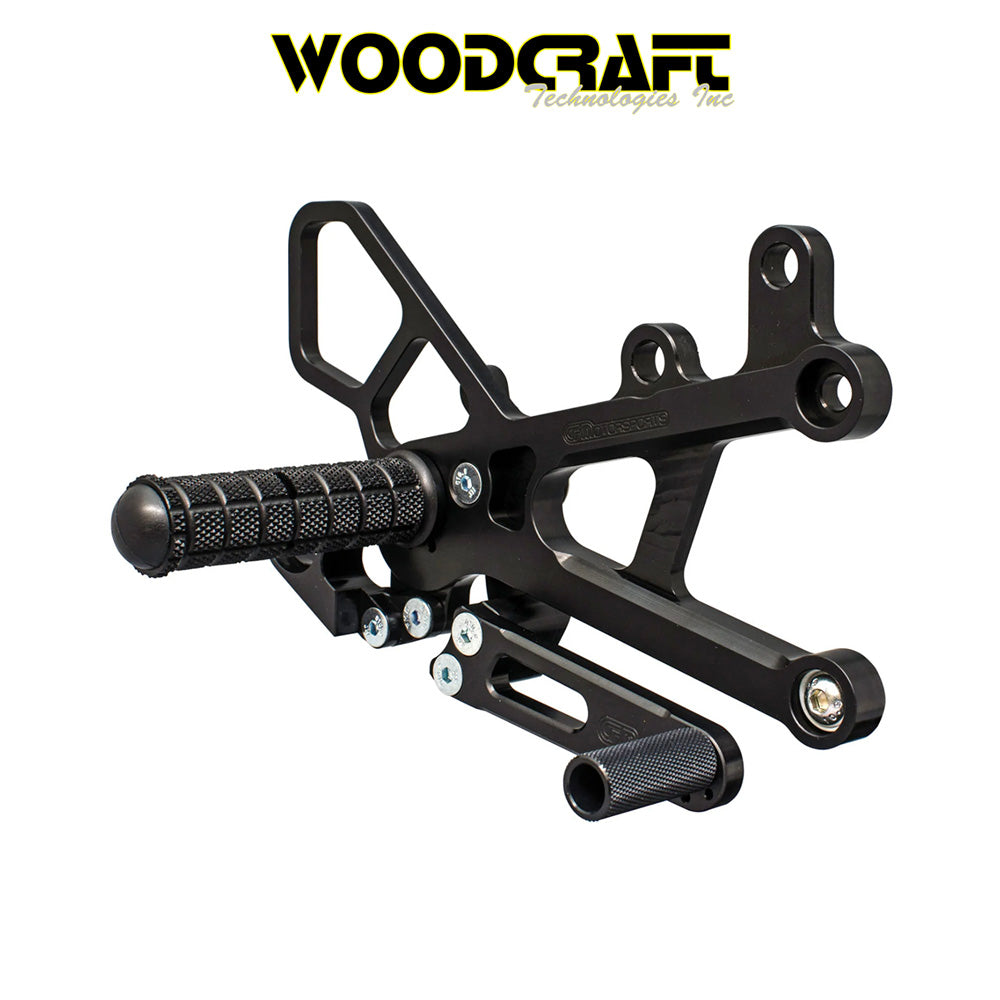 2006-2025年式 ヤマハYZF-R6用 ウッドクラフト製リアセット - GPシフト専用(専用のブレーキスイッチ付き) Woodcraft 05-0457B Yamaha R6 Rearset - GP Shift (消費税、送料込み)