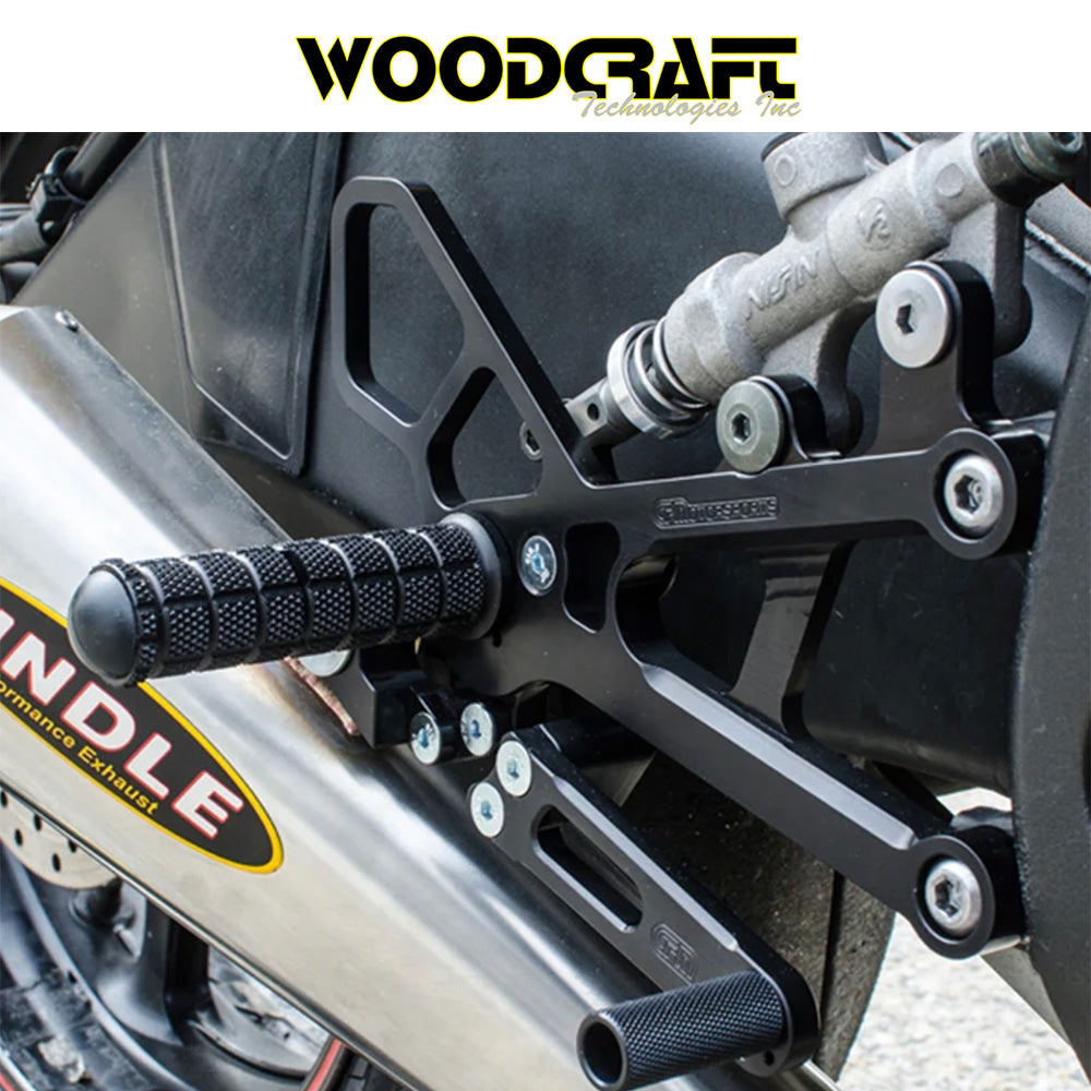 ウッドクラフト製リアセットキットは調整可能な偏芯フットペグとトゥペグを備えています(該当する場合)。