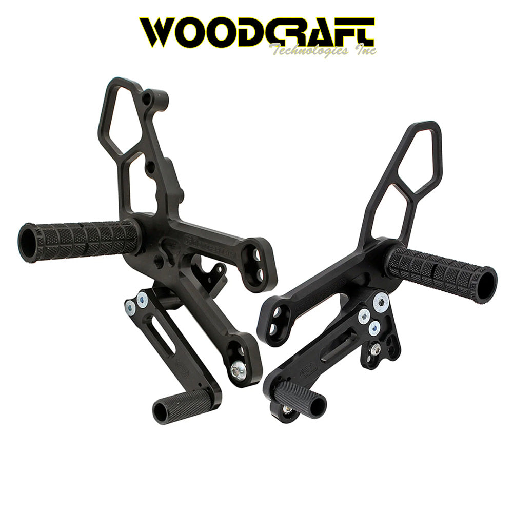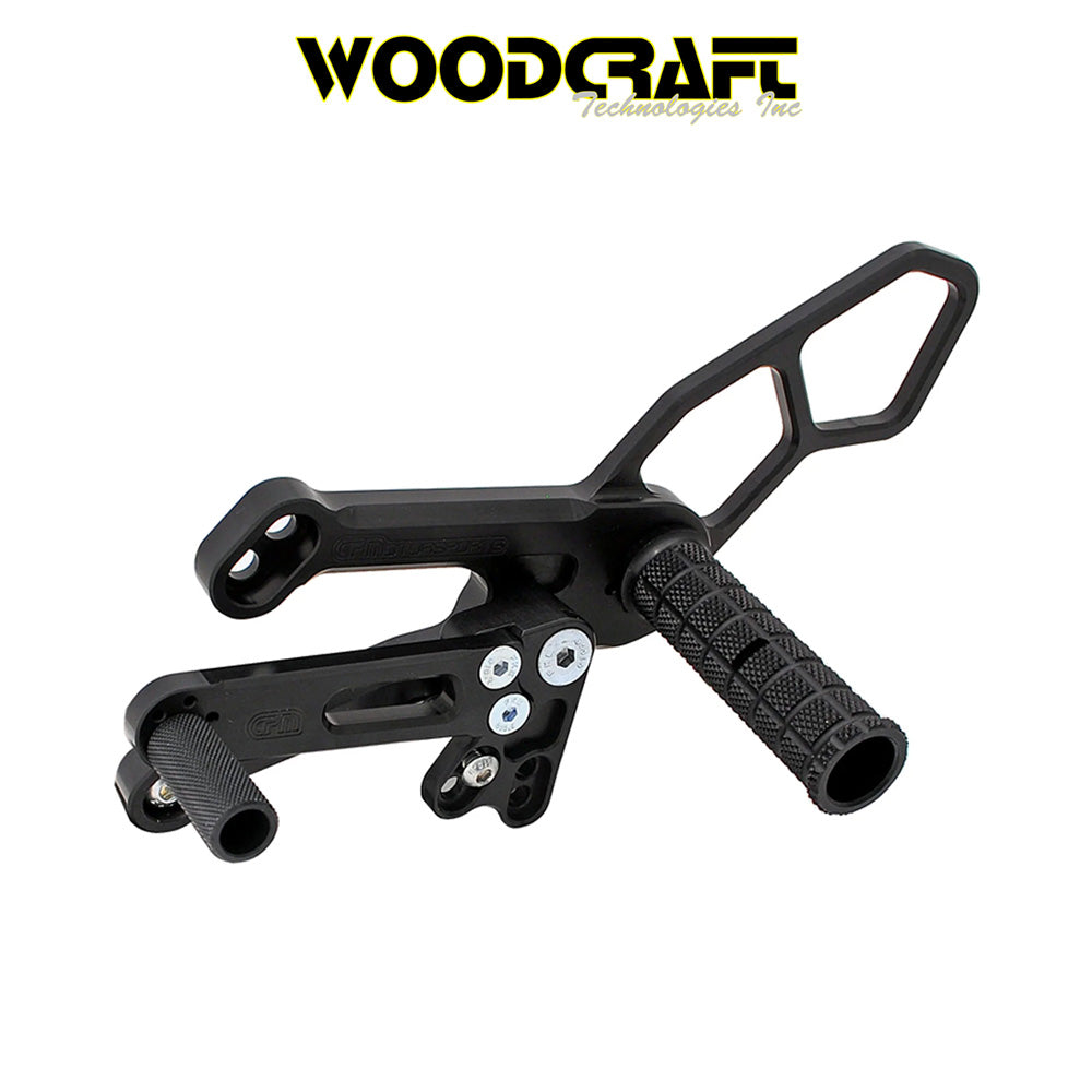 2015-2024年式 ヤマハYZF-R3用 ウッドクラフト製リアセット - GPシフト専用(専用ブレーキスイッチ付き) Woodcraft 05-0404B Yamaha R3 Rearset - GP Shift (消費税、送料込み)