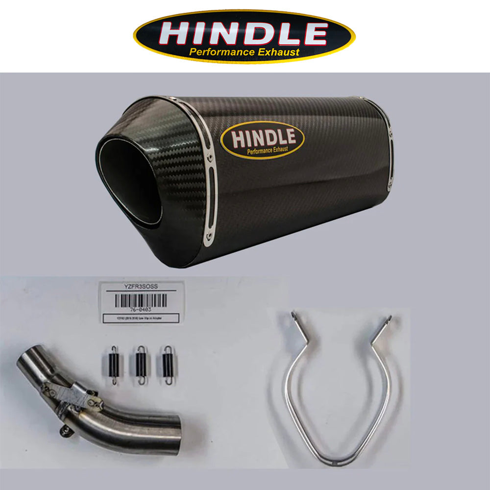 2015-2024年式 ヤマハYZF-R3用 ヒンドル製エボリューション スリップオンシステム(カーボン製マフラー、カーボンキャップ付き) Hindle 76-0403 Yamaha R3 Evolution Slip-on System (消費税、送料込み)
