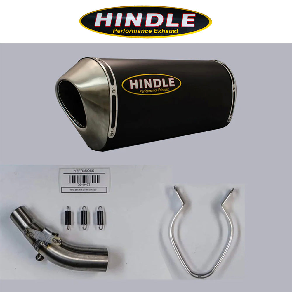 2015-2024年式 ヤマハYZF-R3用 ヒンドル製エボリューション スリップオンシステム(ブラックセラミックマフラー、ステンレスキャップ付き) Hindle 76-0403 Yamaha R3 Evolution Slip-on System (消費税、送料込み)