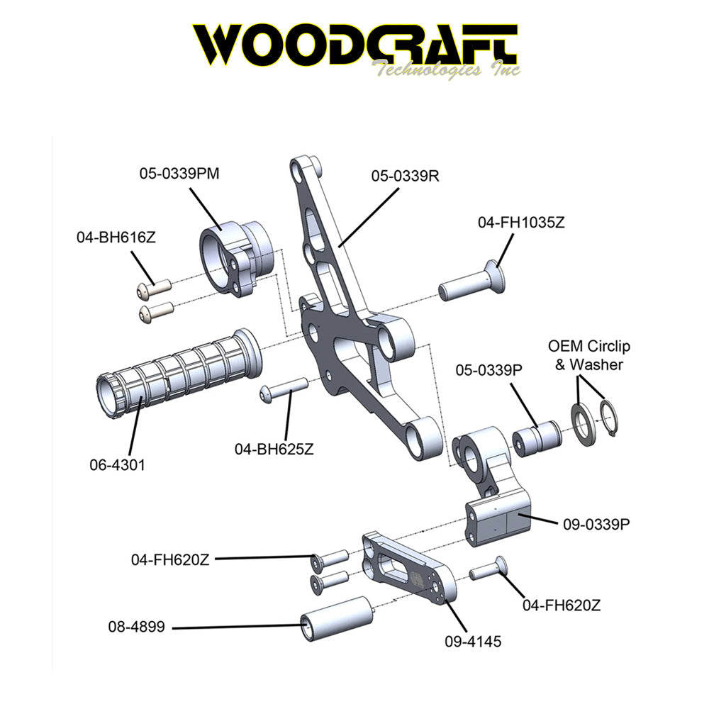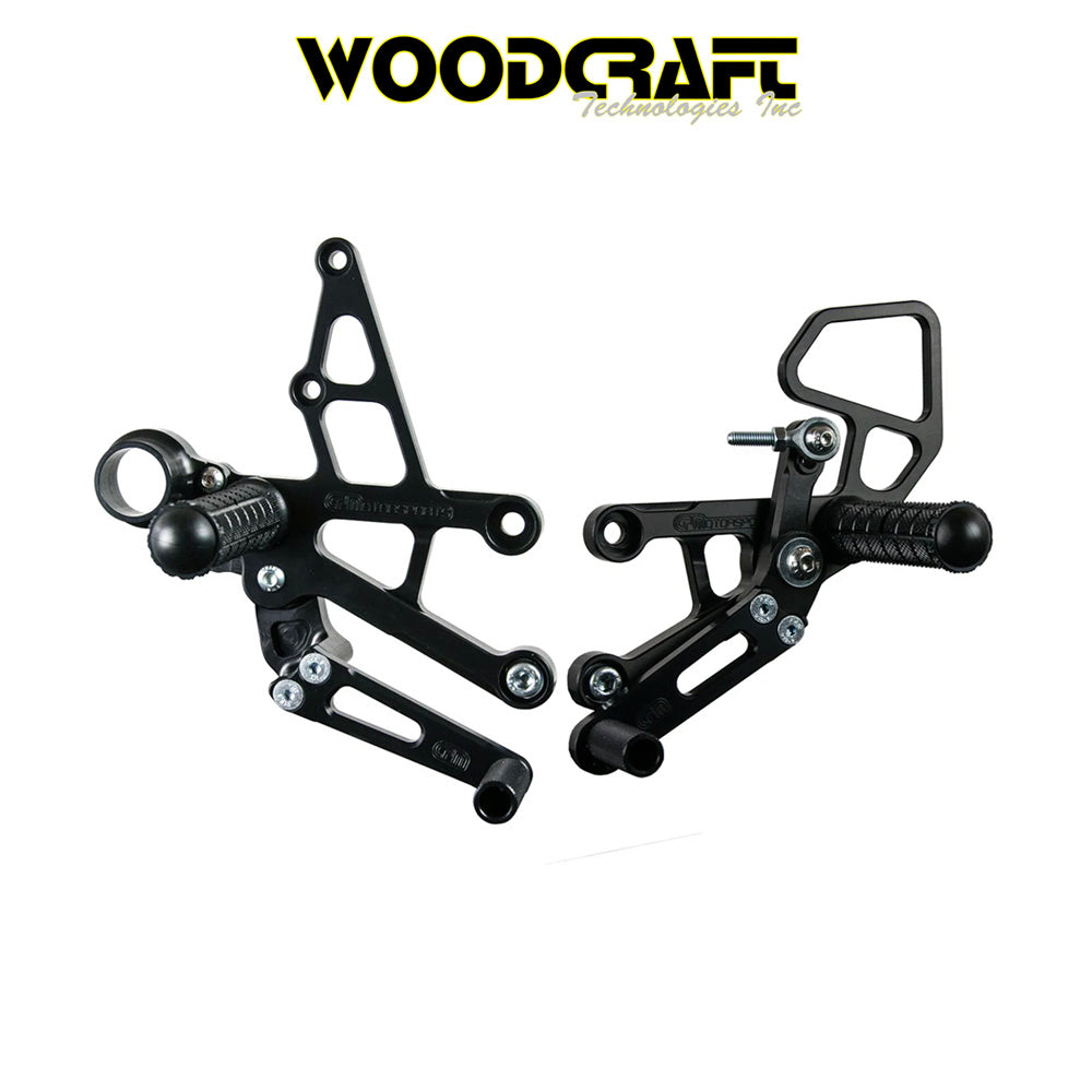 ウッドクラフト製リアセットキットは調整可能な偏芯フットペグとトゥペグを備えています(該当する場合)。