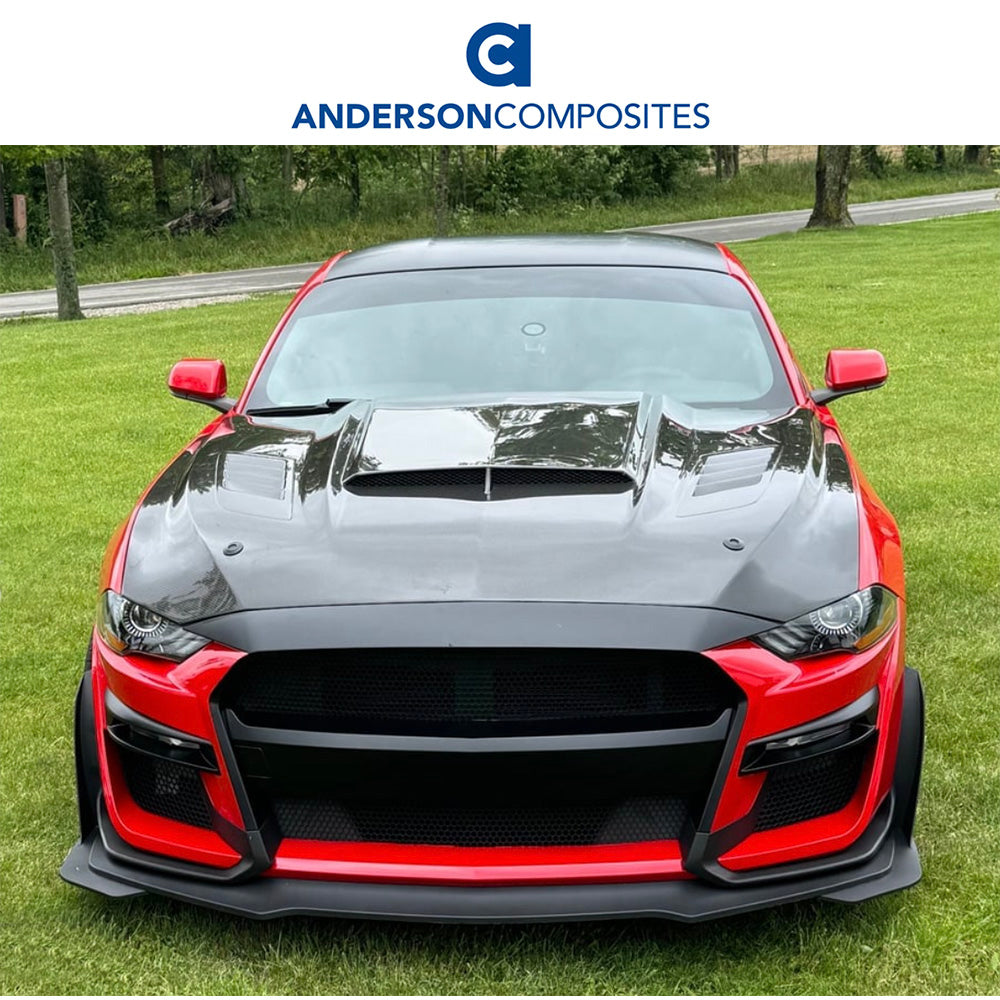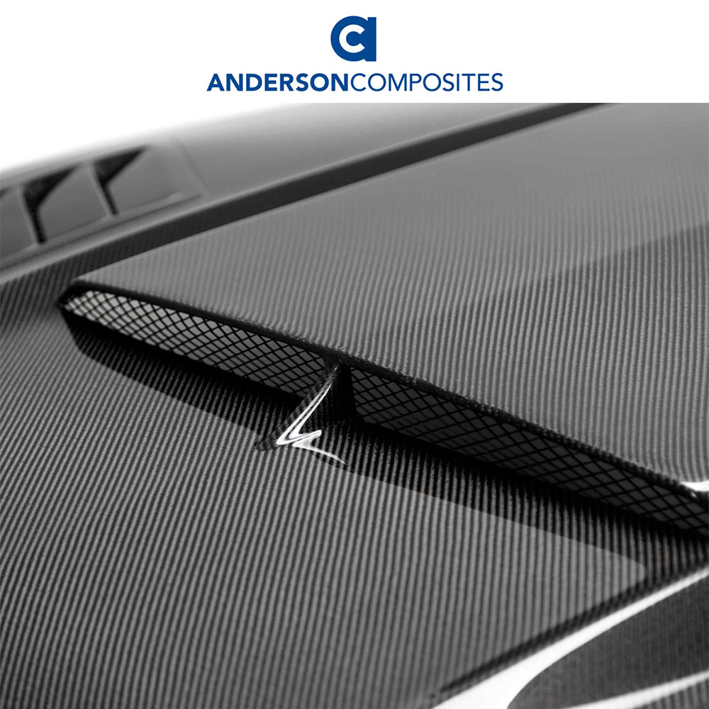 2018-2023年式フォード マスタング用 アンダーソン コンポジッツ ABタイプ カーボンファイバー製ラムエア両面ボンネット Anderson