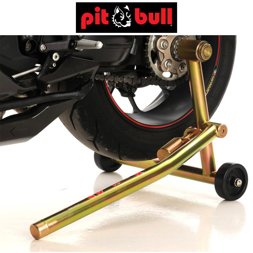 ピットブルはスポーツバイク向けに高品質なアメリカ製製品を提供し続けて25周年を迎えました。メーカーのバイクスタンドは高級チューブと角張ったショルダー部で作られておりピットブル社特有の独特の形状をしています。ピットブル特有のゴールドとレッドのカラーリングはサーキットで多く見られる商品です。