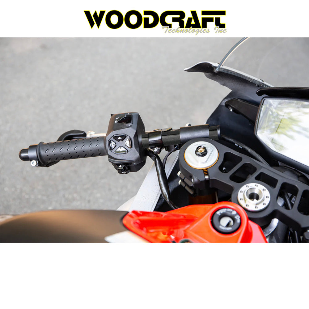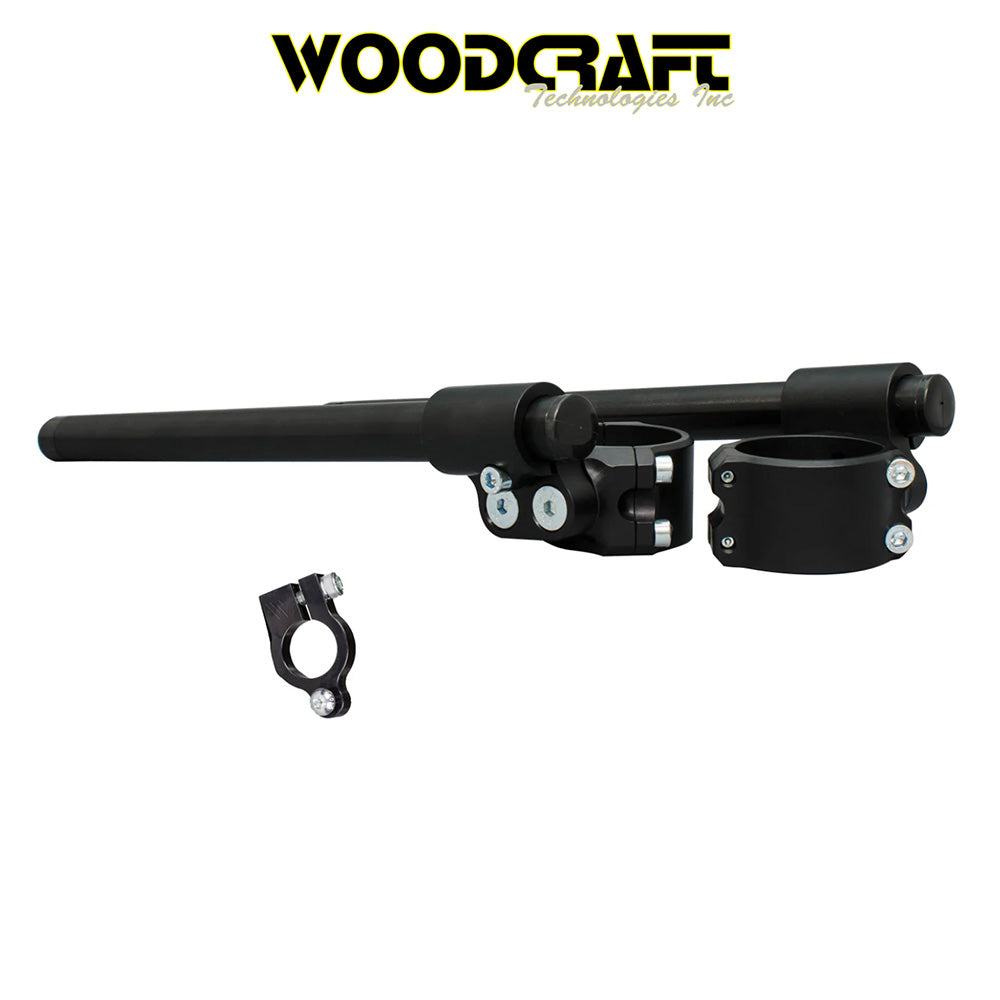 ウッドクラフトのトレードマークである2ピースボディクランプは20年以上のレースでその性能が実証されており、他社製品よりも簡単かつ迅速に取り付けることができます。バー交換のためにフロントエンドを分解する必要はありません。