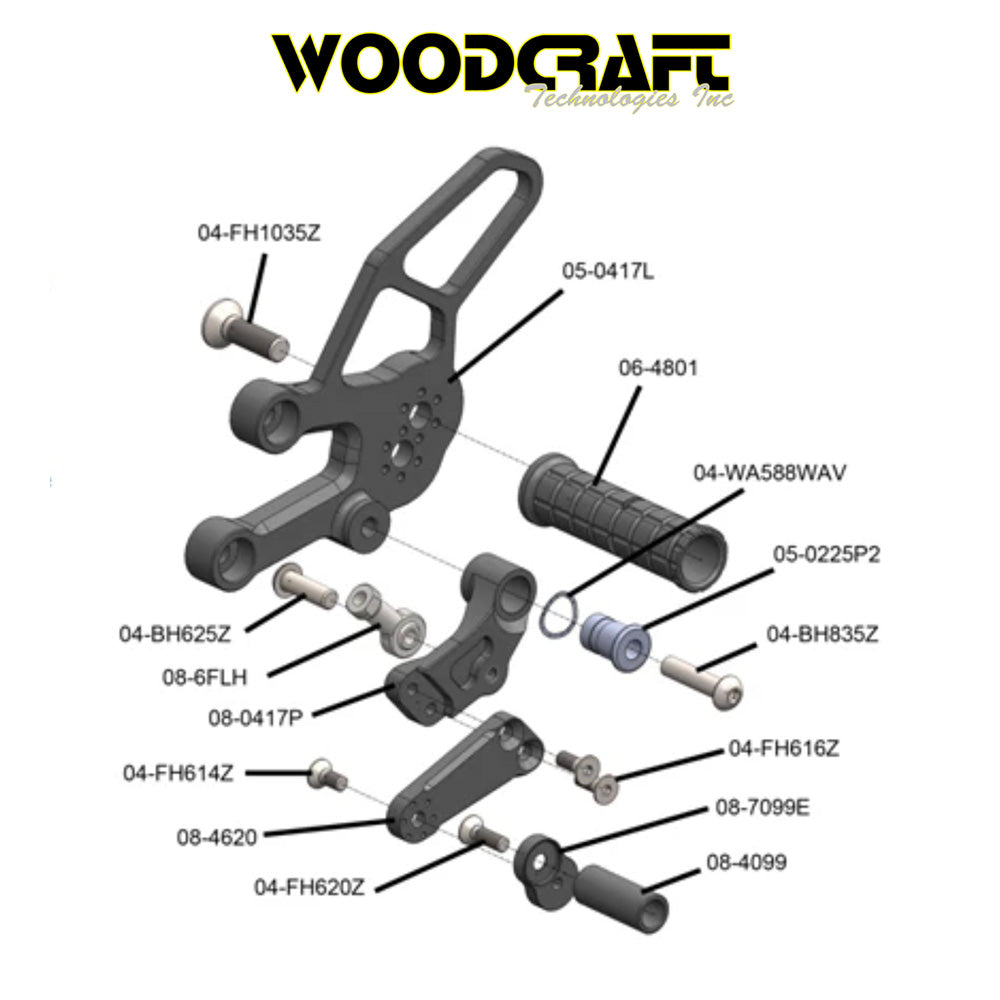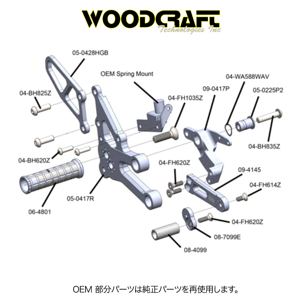 2022-2025年式 ヤマハ YZF-R7用 ウッドクラフト製ペダル付きリアセットキット一式(専用ブレーキスイッチ付き) Woodcraft 05-0417B Yamaha YZF-R7 Complete Rearset Kit w/ Pedals (消費税、送料込み)