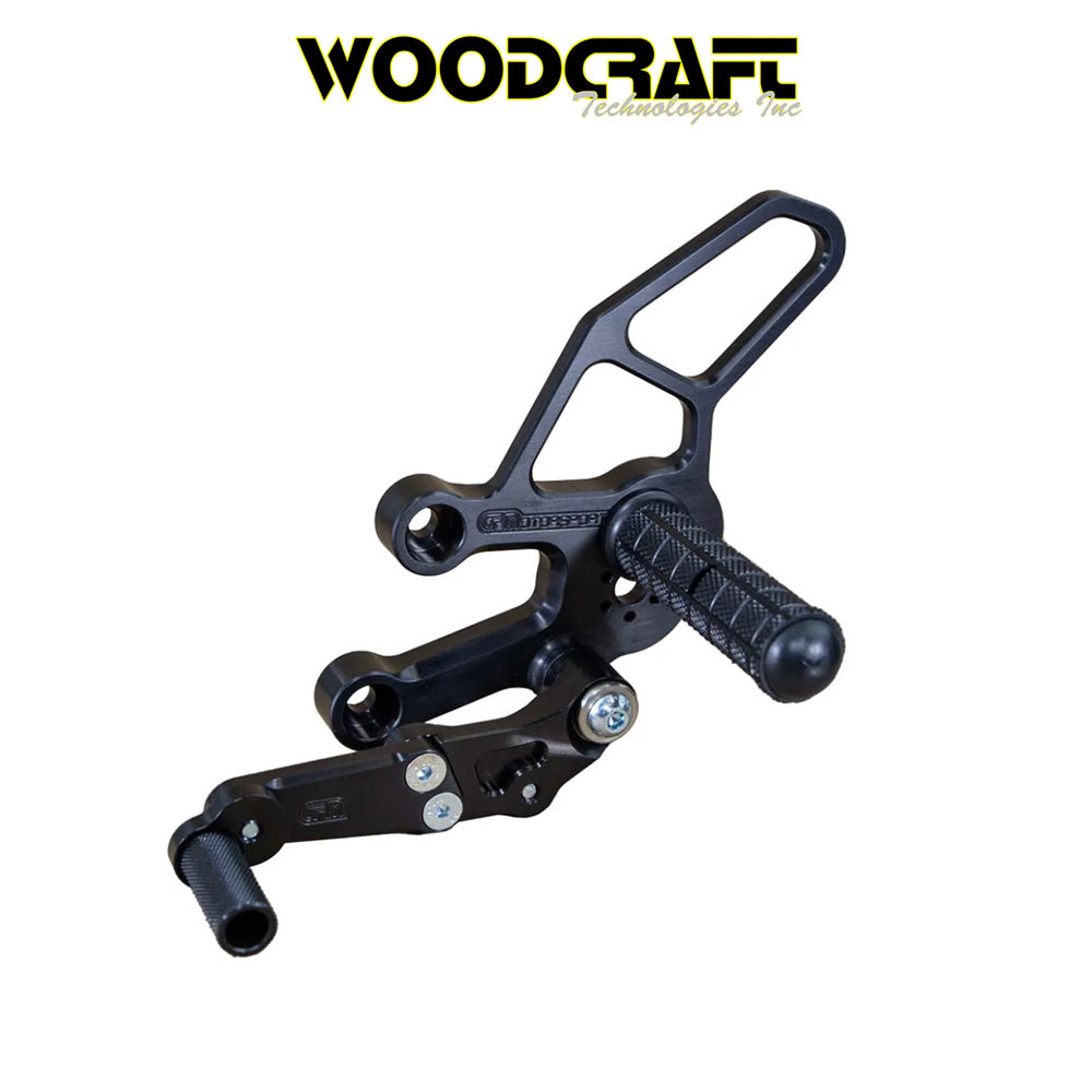 ウッドクラフト製リアセットキットは、調整可能な偏芯フットペグとトゥペグを備えています(該当する場合)。