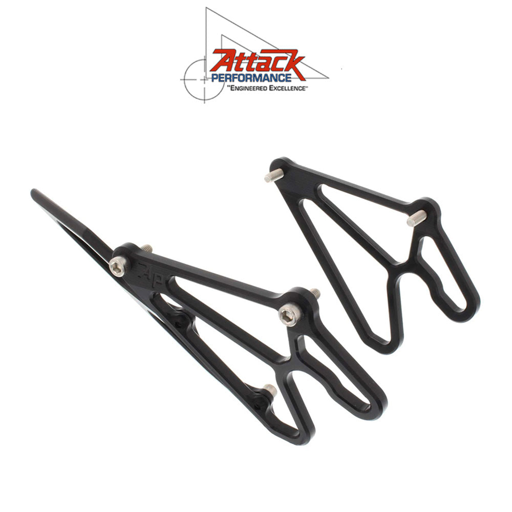 アタックパフォーマンス製スプロケットガード&バイクリフターキットを使用すると「GPスタイル」のリアスタンドでバイクを持ち上げることができ、一体型トゥガードも装備されています。このキットを利用する際には互換性のあるリアスタンドが必要です。アタックパフォーマンスのリフトキットは軽量で硬質アルマイト処理されたビレット合金からCNC加工されています。